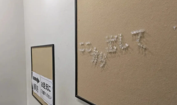 リアル異変探しゲーム「嘘の区民展」は、会場内に仕掛けられた数十個の異変を見つけ出すリアル体験型ゲームだ。「ここから出して」と画鋲でSOSが出されていたり、館内連絡用の電話が糸電話だったり、玄関マットの文章の並びがどこかおかしかったりと、些細だが確かに「普通ではない」違和感が空間を埋め尽くす。