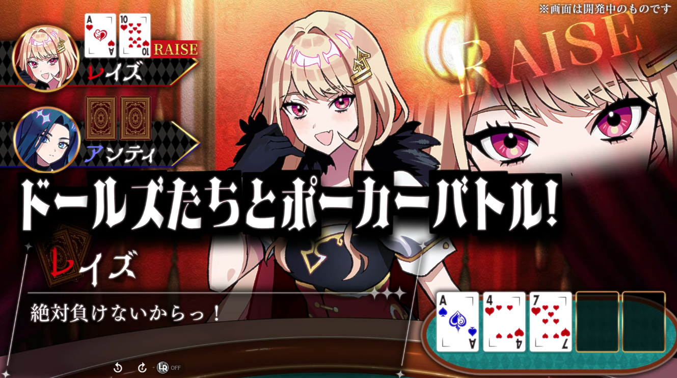 登場する少女たちはポーカー用語から名を冠した個性豊かなキャラクターたちだ。強運と強気なプレイの「レイズ」(CV.柊優花)、寡黙な戦略家「チェック」(CV.悠木碧)、お調子者の「チップ」、品行方正な「アンティ」、自信なさげな良家のお嬢様「フォールド」の5人が、嘘と真実が交錯する騙し合いを繰り広げる。