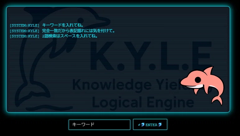 K.Y.L.E.(Knowledge Yielding Logical Engine、通称カイル)は、ネットワークを介した調査活動をサポートするために開発された補助システムだ。入力したキーワードをもとに関連情報を収集・整理し、次の調査先へと導いてくれる。
