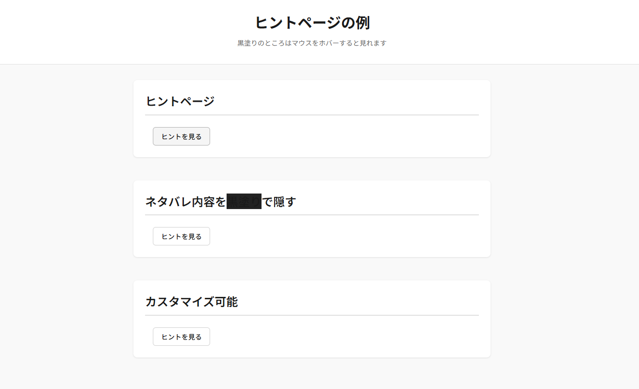 ヒントページで詰まっても安心